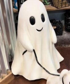 The statue features an adorable dog dressed as a ghost. designed to blend cuteness with a touch of spookiness. is a lovable addition to any Halloween themed decor. delighting both kids and adults.
